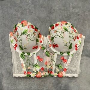 New! Victorias Secret bustier bra top cherries strawberries white 4906