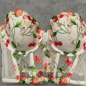 Victorias Secret white with red cherry strawberry embroidery longline bra top. New without tags
