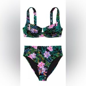 Beautiful black floral underwire full coverage bikini top and high waisted bottom. New without tags!