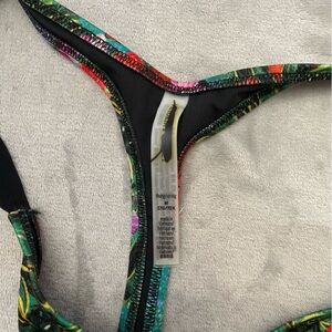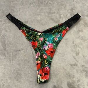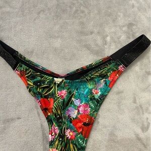 Tropical floral thong cheeky bikini swim bottom with black rhinestone bling shine side straps. New without tags!