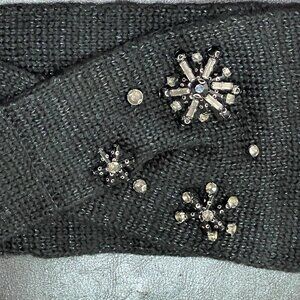 Black silver knit headband embellished with jewels and beads