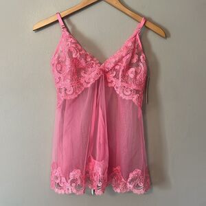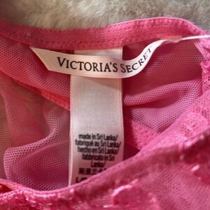 New! Victoria's Secret Very Sexy Sheer Boho Floral Embroidery Babydoll Set Pink