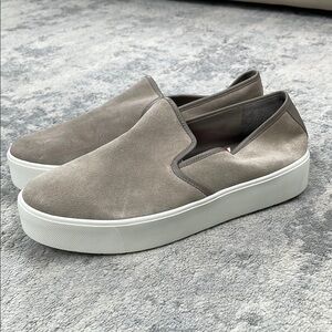 New Vince Brenden B Slip On Platform Sneakers Brown Gray Suede Sz 9.5