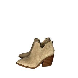 New Vince Camuto 7 M Beige Graden Suede Leather Zip Ankle Chelsea Heel Booties