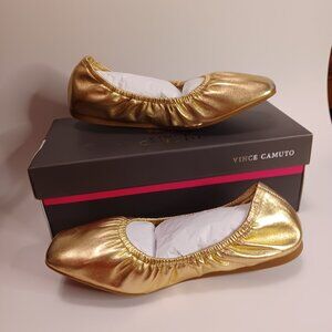 New Vince Camuto Gold Leather Ballet Slippers Shoes
