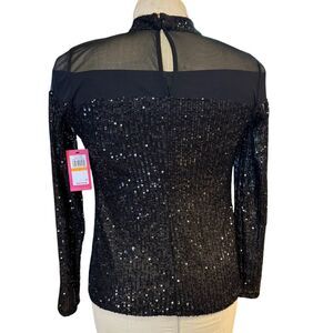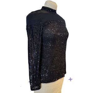 New with tags! Vince Camuto Illusion Yoke Sequin Top. Size Small. illusion mesh yoke gives a peekaboo of skin in this glitzy sequin-covered top.