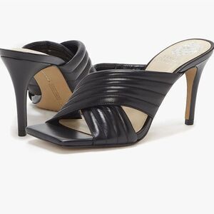 New Vince Camuto Shoes slip on black heeled slides Sarendie Sandal high heel 5.5