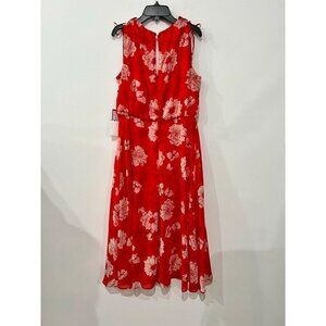 New Vince Camuto Size 6 Floral Print Tie Shoulder Chiffon Dress Red