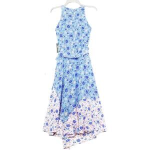 New Vince Camuto Women's Mixed Floral Print Halter Neck Asymmetric Midi Dress