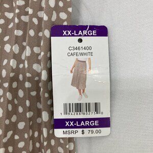New Vince Camuto size XXL Light Brown Polka Dot Pleated Pull-on Midi Skirt