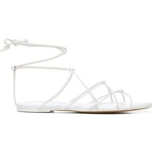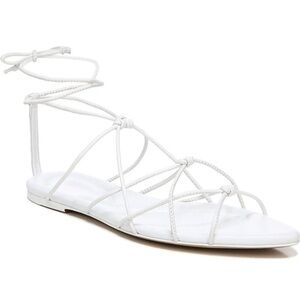 Vince Kenna White Leather Pointed Toe Flats Lace Up Gladiator Shoes Sandals