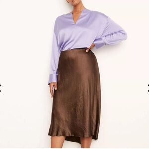 New! Vince satin Slip Midi Skirt Nut Brown silk 1X plus size nwot 33409