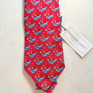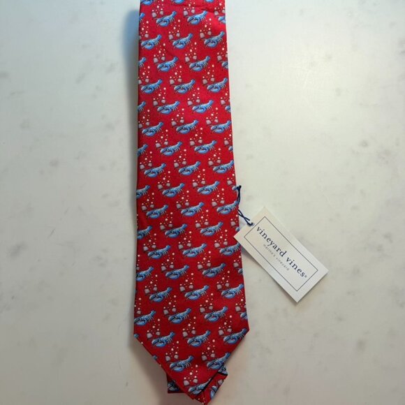 New with tags Vineyard Vines tie. Red background with blue lobsters. 56"