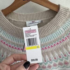 New Vineyard Vines Shine Fairisle Sweater In Oatmeal Medium PB