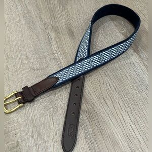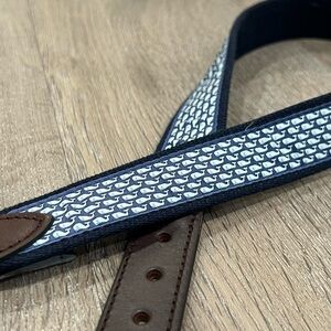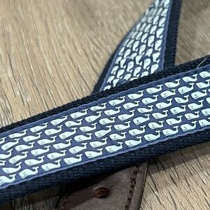 New? Vineyard Vines Size 30 Classic Whale Print Navy Canvas and Leather Belt