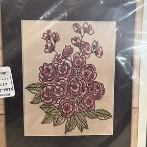 New Vintage 1970 Vogart Crafts Crewel Kit Pink Blooms Kit No 2614 Crewel