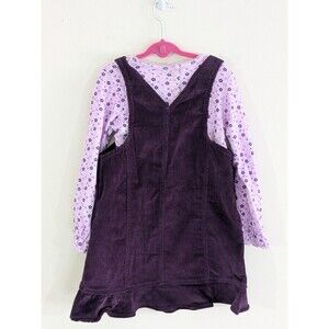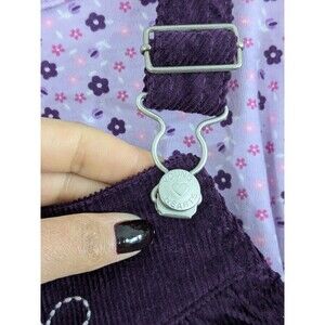 The product is a vintage 1990's Young Hearts purple corduroy overall set dress in size 4T. This original dress features long sleeves and a casual occasion, perfect for young girls. The corduroy material gives it a unique texture and adds to the retro appeal of the 1990s style. With its cute design and vibrant color, this dress is sure to stand out in any child's wardrobe.
