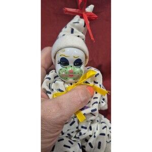 New Vintage Chinese Porcelain Face Clown Doll 9" Counting Hat Never Played With