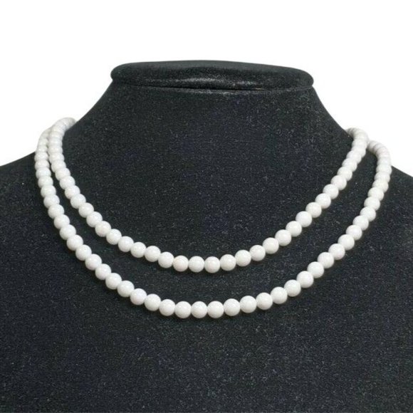 New Vintage Handcrafted 18" White Single Beaded Necklace A21