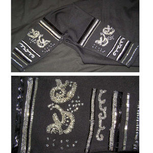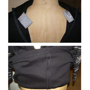 Made of 70% acrylic and 30% wool; Zips in back, mock neck collar.