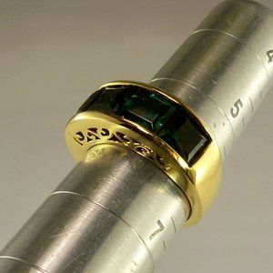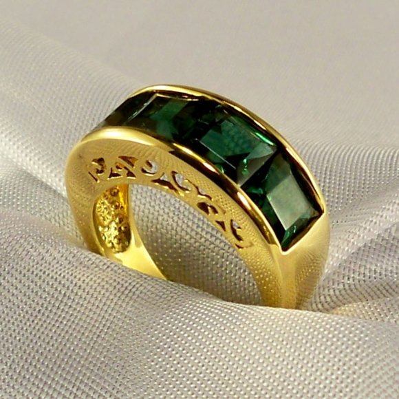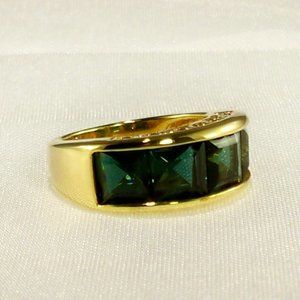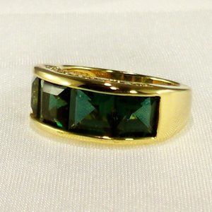 New Vintage R C by Adrienne Emerald Green Cubic Zirconias, Gold Ring