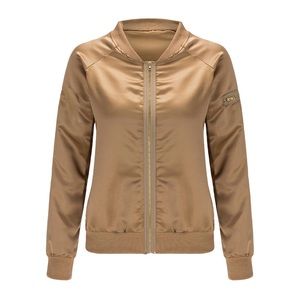 New Vintage Style Chic Bronze Satin Disco Bomber Jacket