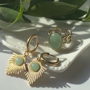 New Vintage Style Sunflower Natural Stone Ring & Earrings