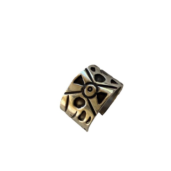 This is a new vintage etched sterling silver band ring in size 9.5 and is a stunning piece of Mexican jewelry. The ring is signed and made of 925 sterling silver, giving it a high-quality feel. Its ethnic and regional style adds a unique touch to its design, making it a standout piece for any jewelry collection. Made in Mexico, this ring is a beautiful representation of Mexican craftsmanship and style.