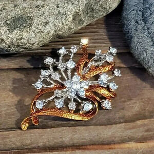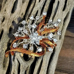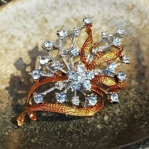 New Vintage Topaz Brown Austrian Crystal Flowers and Ribbon Brooch Sweater Pin