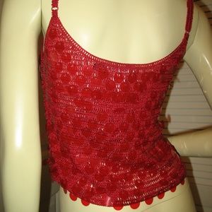 New Vintage Y2K 90s Rampage Red Spaghetti Embellished Top Cami Knit Crochet Glam