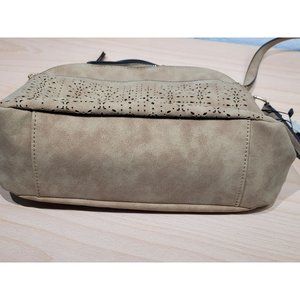 New Violet Ray Purse Tan Faux Leather Lasercut Crossbody Shoulder Bag