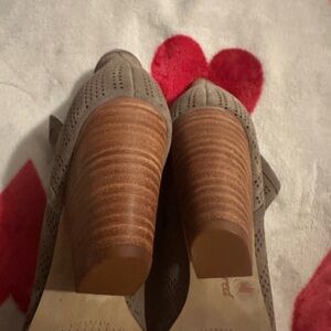 Stylish taupe booties with perforated design. Comfortable and versatile. Ideal for any outfit.