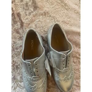 New Vionic Shoes Womens 6.5 Silver Leather Oxfords Wingtip 356 Hadley Lace Up