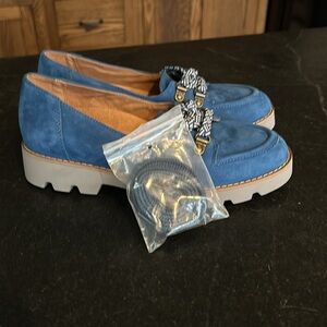 New Vionic Teagan Leather Loafer in dark blue nubuck leathered Lug Sole Womens 5