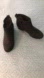 Cute and comfortable black ankle boots from Vionic. These new booties feature a knit V insert on the side with the same fabric continuing around the edge of the opening, photos 8 and 9. These are pull on style and have a soft suede finish and are weather resistant.