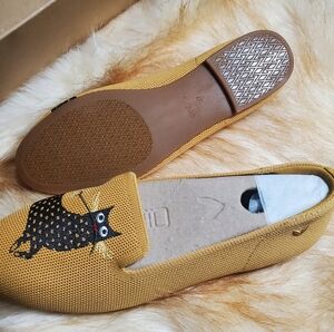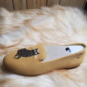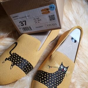 New Vivaia Audrey Round-Toe Yellow Dot Cat Embroidered Loafers Size 6.5US 37EUR