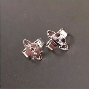 New Vivienne Westwood Silver Crystal Orb Charm Heart Post Earrings