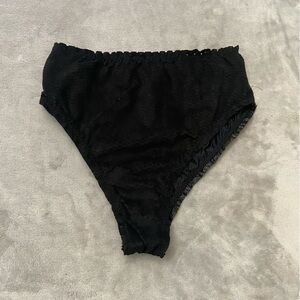 High-waisted bikini bottom that provides medium coverage with a high leg on an exclusive scales texture fabric.
