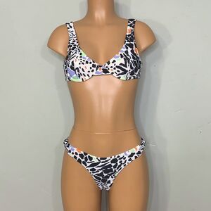 New. Animal print underwire too. Fastens at back. Removable pads.