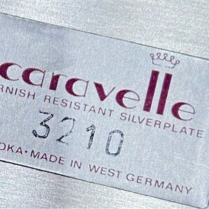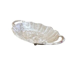 New in bag vintage 1970’s caravelle by Hoka marked numbered silver plate tarnish free west Germany ruffle edge oval serving plate/dish. Footed. Handles. Cool swirl finish on inside. Lightweight. Its sleek design and shimmering finish make it a perfect addition to any table setting. Gorgeous!!!! New!