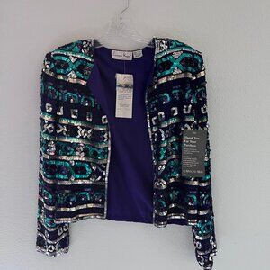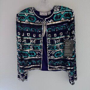 New Vtg Holiday Evening Cocktail Jacket Laurence Kazar M Retro Sequin Beaded