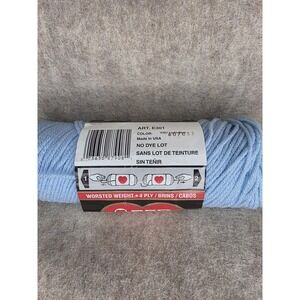 The product is a new vintage Red Heart Super Saver yarn in a classic light blue color. This 4 Ply Worsted weight yarn is made of acrylic and comes in a single skein shape. It is suitable for various crafting projects like accessories (gloves, hats, scarves) and blankets/throws. The yarn is from the United States and is part of the Super Saver product line, known for its quality and durability. Perfect for knitting or crocheting your favorite projects in a beautiful shade of light blue.