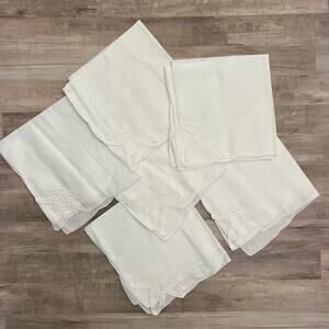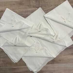 New Vtg SET 6 White Cotton Linen Battenberg Embroidered Lace Napkins 17" Square