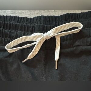 Comfortable Vuori pants in a dark charcoal shade. Ideal for workouts or lounging.