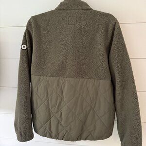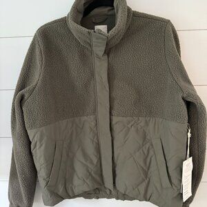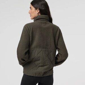 The Highlands Sherpa is a casual cool-weather jacket that combines light insulation with plush sherpa fleece. Made from recycled materials, it features a quilted woven bottom panel and storm flap front zip. Welt pockets and smocking on the interior hem offer breeze-blocking power.