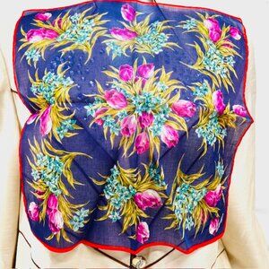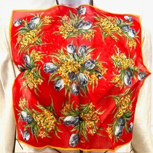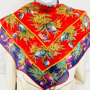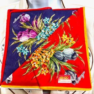 #60 New in Box set of 2 KENZO Paris Mini Scarf/Handkerchief cotton 18"x18 , color red purple green yellow floral, Desiged in Paris, made in Japan. Excellent Condition, no mark no stain, Sell As Is