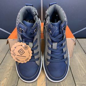 ~New W/ Box! Kids Dream Pairs Navy Sneaker Boots Comfortable Fall Winter Size 3