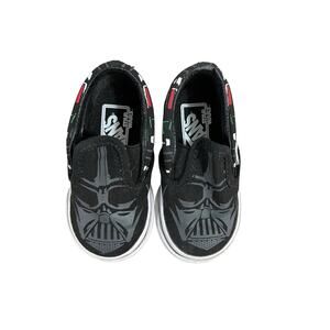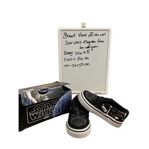 •New With Box Vans off the wall Star Wars MAY THE FORCE BE WITH YOU DARTH Vader Toddler Slip On Shoes SZ 4.5. Very hard to find shoes, especially new with box. Box is a little beat up from storage. Other then that, no flaws. VN-0UCYDJM. So cute for your mini Star Wars fan!!! Feel free to message me with any other questions!