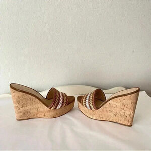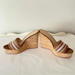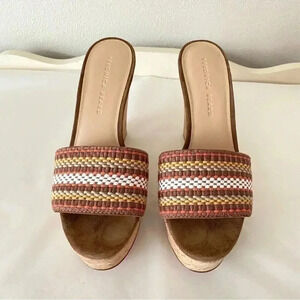 Gorgeous Veronica Beard Dali Multi Woven Raffia Leather Cork Wedge Sandals.