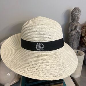 Brand new. No tags. From smoke free home. Bundle and save. The product is a stylish White Claw Hard Seltzer Panama Hat in Ivory, perfect for women. It is a one-size-fits-all sun hat with a black Contessa design.